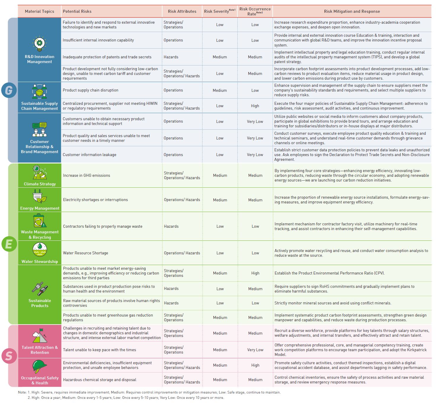 In addition, HIWIN’s materiality analysis process was validated by internal and external experts and finalized by senior executives, resulting in the identification of 10 material topics. These topics were independently verified by TÜV Rheinland to ensure their reliability and completeness. The material topics were then reported to the Board of Directors and serve as a fundamental basis for developing HIWIN’s future sustainability strategies.