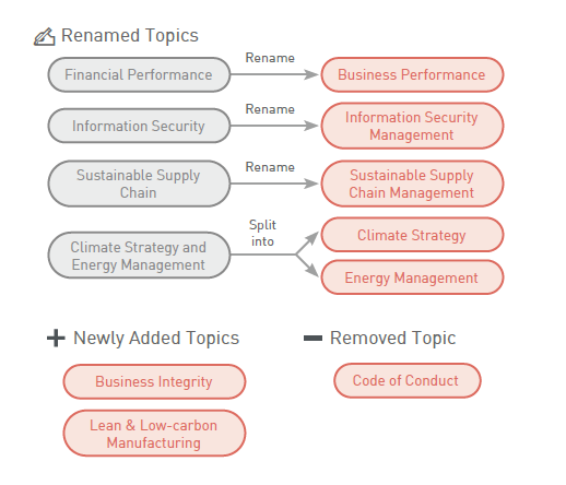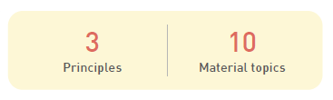 Note: The three key principles serve as qualitative criteria for determining inclusion in the 2024 material topic list. The four ranking factors were quantified into star ratings based on questionnaire and impact assessment results and used to determine the ranking of the 10 selected topics.