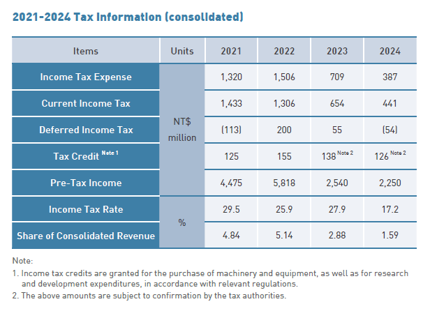 In response to global trends in tax governance and the implementation of a global minimum tax regime, each consolidated entity is responsible for filing and paying taxes in accordance with local tax laws. Day-to-day tax administration and management are handled by the respective finance departments, ensuring compliance with internal procedures and relevant tax regulations. Tax-related matters are reviewed by certified public accountants or tax professionals and submitted to the appropriate approval levels.