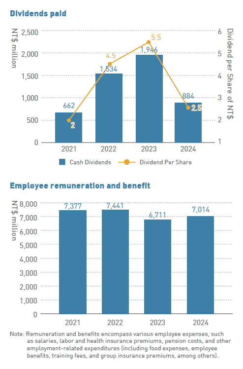 HIWIN’s dividend policy adheres to the Company’s articles and legal regulations regarding the annual distribution of earnings. The dividend distributions for the years 2021-2024 are as follows: