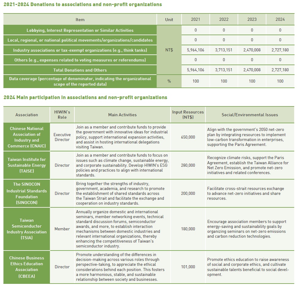 HIWIN actively engages in the operation of public associations and is dedicated to integrating resources and collaborating with like-minded partners to establish an industrial ecosystem, drive industry transformation and upgrading, and enhance overall competitiveness. Additionally, HIWIN contributes through policy recommendations, supporting exhibition businesses, organizing forums, participating in international exchanges, and serving as Chairmans, Directors, Supervisors of the associations, or members of professional committees.