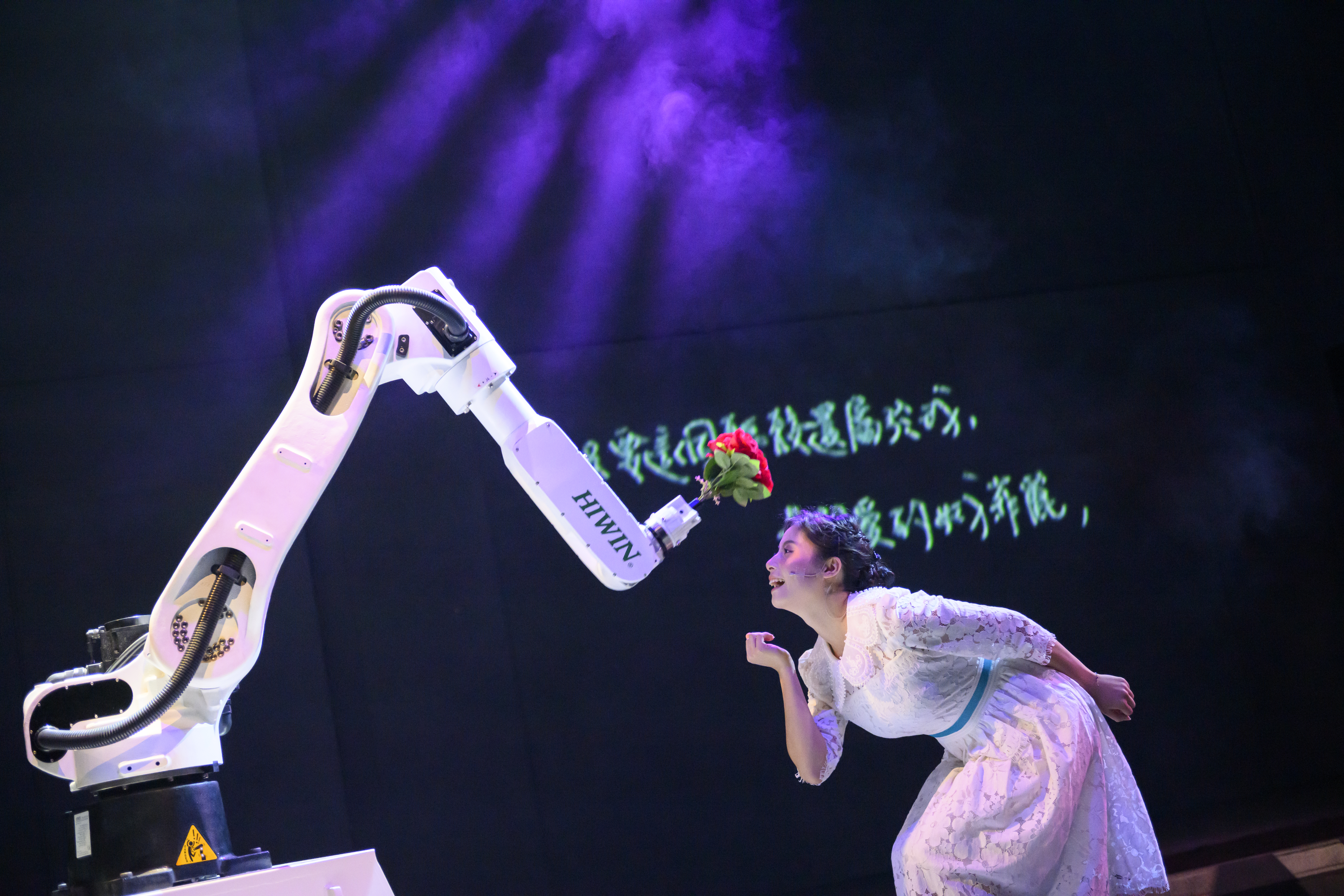 As part of the department’s 25th anniversary celebration, this production was the result of a successful, industry-academia collaboration, bringing together interdisciplinary talents to explore the fusion of technology and performing arts. Utilizing industrial robot technology, the project redefined the boundaries of traditional theater. In the final production, Hamlet Machineman, robots performed alongside live actors, assuming the role of dancers. Their precise movements and seamless interaction with the performers captivated audiences, showcasing a delicate emotional exchange between humans and machines. Each synchronized gesture challenged conventional stage practices and reimagined how robotics can contribute to narrative and performance. The project not only demonstrated the flexibility and expressive potential of robots in artistic contexts but also opened new possibilities for future stage productions. Rising the value of industrial technology in the creative area. The production was staged from December 3 to 7, 2024.
