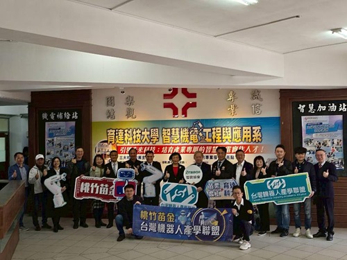 因應產業缺工時代與AI智慧製造的快速發展,苗栗縣育達科技大學於2026年3月13日上午10時在校內商管大樓4樓舉辦「智慧工業機器人技能培育中心」揭牌儀式,同日並召開「台灣機器人產學聯盟桃竹苗金區域聯盟會議」。活動匯聚產官學界代表,共同見證區域智慧製造人才培育的重要里程碑,展現育達科大深耕AI與智慧機器人教育的決心。